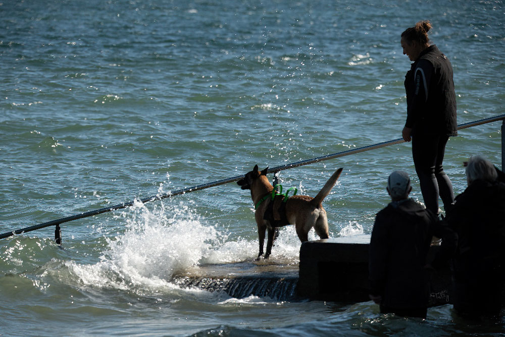Beide Hundeteams haben sehr gute Noten im Wasser bei der Klasse WAH3 erzielt.